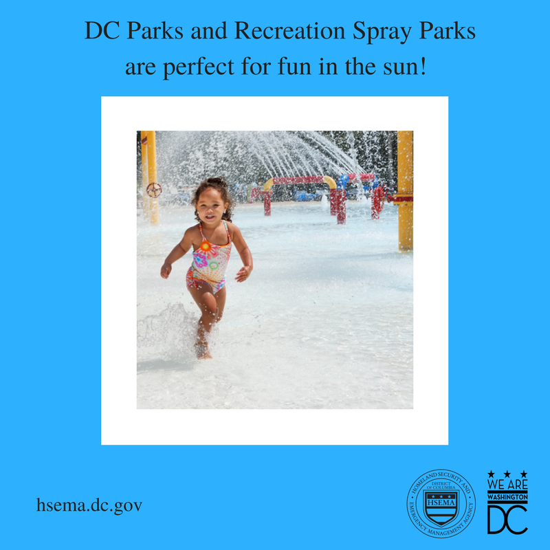 DPR Spray Parks are small outdoor parks equipped with kid friendly fountains that are perfect for splashing around and escaping the summer heat. There is at least one spray park in every Ward of the District.